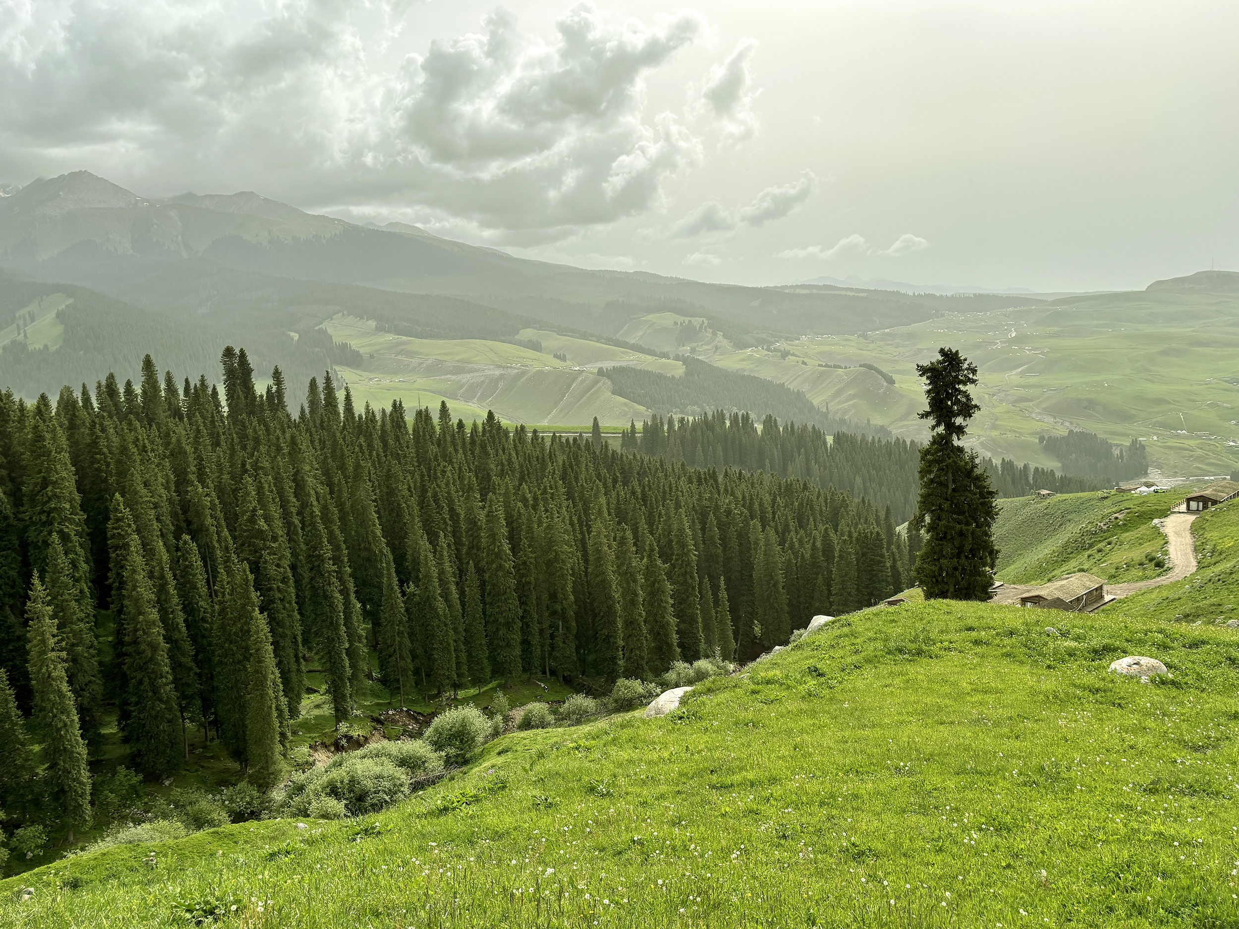 言归正传,也是在做了大量攻略之后,我将原本已预订好的飞阿拉木图机票退订,原因是差不多的旅游预算下,隔壁新疆的风光,包括基础设施和美食会更吸引我。首先从地图上来看,伊犁河谷东部的绿原雪山看起来更加丰富,西部哈萨克斯坦部分绿色并没有那么茂密,事实上证明我的决定也是对的,新疆不同于我曾经到过的任何国内地方,其旅游资源丰富程度令人咋舌,是草原爱好者天堂,我曾经以为国内的草原天花板在内蒙古,但其实可能是新疆。天山山脉划分了南北疆,在北疆大部分地方都不难发现其踪迹,对于第一次见到雪山的人来说真的能感受到一种纯净圣洁的力量,虽然新疆是个世俗化程度很高,宗教味不浓的地区,这点和8年前到过的摩洛哥有本质区别。